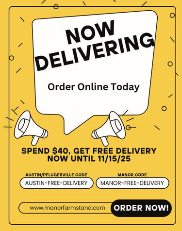 Any order can be picked up the next day at the farm stand. You will receive a text message when your order is ready for pick-up.